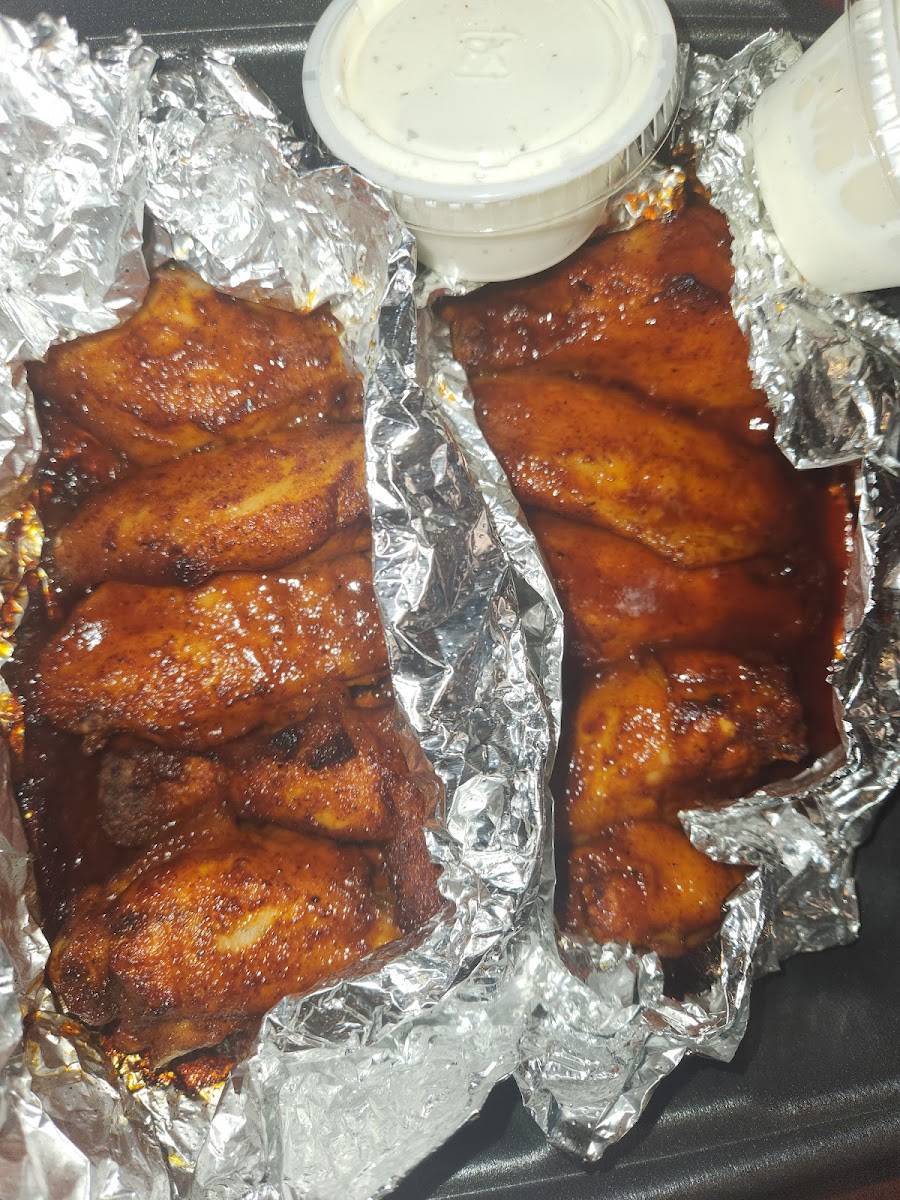 GIANT! hot wings as meaty as a chicken leg. Blue cheese dipping sauce is not house-made it’s just Ken’s blue cheese dressing packet (boohoo). Perfect small pepperoni pizza tasted ‘from scratch’ and real. Sturdy edge to edge cheese made perfectly foldable NY thin. Wish the fake garlic dipping sauce cup was a pickle or pepper. $40
